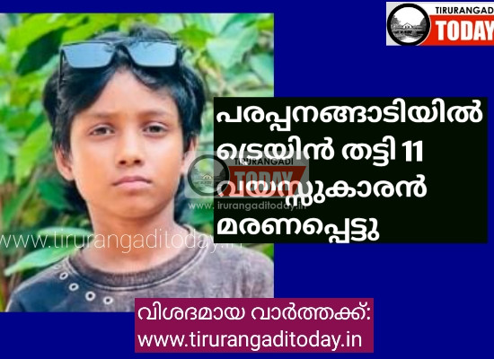 പരപ്പനങ്ങാടി : ട്രെയിൻ തട്ടി 11 വയസ്സുകാരൻ മരിച്ചു. അരിയല്ലൂർ എം വി എച്ച് എസ് സ്കൂളിന്റെ സമീപം കാരാട്ട് ക്ഷേത്രത്തിന് സമീപത്തെ ട്രാക്കിൽ ട്രെയിൻ തട്ടി മരിച്ചത്. ചെട്ടിപ്പടി കോയംകുളം കൊടക്കാട് കുന്നംപള്ളി പുതിയ നാലകത്ത് ഫൈസലിന്റെ മകൻ അമിൻ ഷാ ഹാഷിം എന്ന കുട്ടിയാണ് മരിച്ചത്. മൃതദേഹം തിരൂരങ്ങാടി താലൂക്ക് ആശുപത്രി മോർച്ചറിയിൽ.