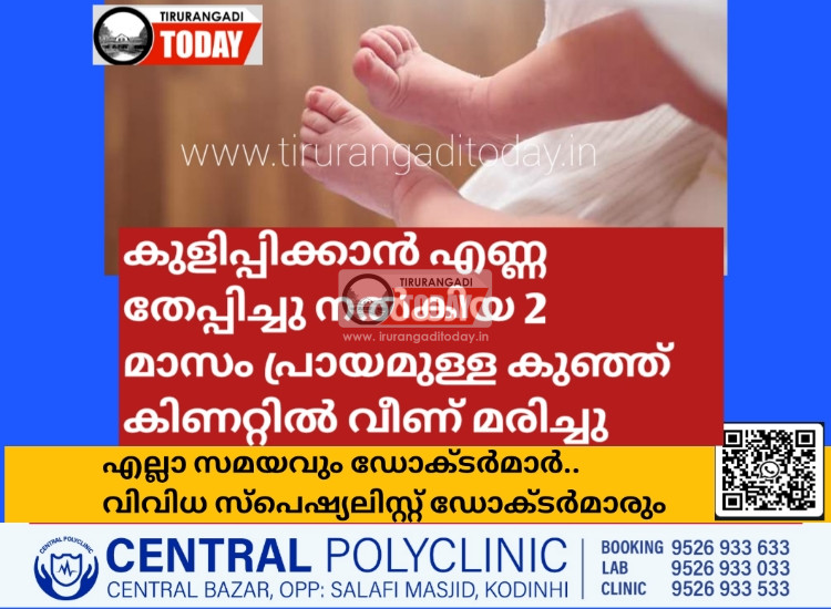 കണ്ണൂർ : എണ്ണ തേപ്പിച്ച് കുളിപ്പിക്കാനായി നൽകിയ രണ്ട് മാസം പ്രായമുള്ള കുഞ്ഞ് ഉമ്മയുടെ കയ്യിൽ നിന്ന് കിണറ്റിൽ വീണ് മരിച്ചു. തളിപ്പറമ്പ് കുറുമാത്തൂർ പൊക്കുണ്ട് ഹിലാൽ മൻസിൽ ജാബിർ – മുബഷിറ ദമ്പതികളുടെ 2 മാസം പ്രായമുള്ള അമീഷ് അലൻ ജാബിർ ആണ് മരിച്ചത്. രാവിലെ 9.30 ന് വീട്ടിനകത്തെ കുളിമുറിയിൽ വെച്ച് കുളിപ്പിക്കുന്നതിന് വേണ്ടി കുട്ടിയുടെ ഉമ്മൂമ്മ കുട്ടിയെ എണ്ണ തേപ്പിച്ച ശേഷം മുബഷിറയുട കയ്യിൽ കൊടുത്തപ്പോൾ കുട്ടി അബദ്ധത്തിൽ വീട്ടിലെ കിണറ്റിൽ വീഴുകയായിരുന്നു എന്നാണ് വീട്ടുകാർ പറയുന്നത്. മാതാവ് അറിയിച്ചതിനെ തുടർന്ന് സമീപവാസികൾ ഓടിയെത്തി കുഞ്ഞിനെ പുറത്തെടുത്ത് പരിയാരം മെഡിക്കൽ കോളേജിൽ എത്തിച്ചെങ്കിലും മരണപ്പെട്ടിരുന്നു. മാതാവിന്റെ മൊഴി പോലീസ് രേഖപ്പെടുത്തി. പോലീസ് അന്വേഷണം ആരംഭിച്ചു.