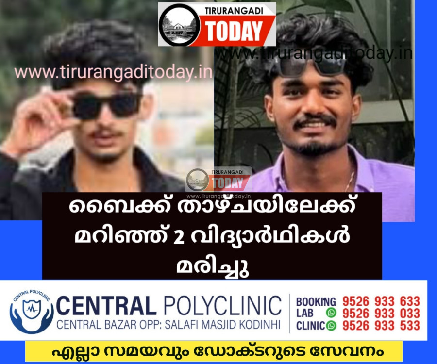 അരീക്കോട്: ബൈക്ക് താഴ്ചയിലേക്ക് മറിഞ്ഞ് 2 വിദ്യാർഥികൾ മരിച്ചു. അരീക്കോട് ഊർങ്ങാട്ടിരി ചുളാട്ടിപ്പാറ ചൂളാട്ടിയിൽ വീട്ടിൽ കരിക്കാടംപൊയിൽ മുഹമ്മദിൻ്റെ മകൻ മുഹമ്മദ് ഷാനിദ് (21), ചൂളാട്ടിപ്പാറ കാറ്റാടിപ്പൊയിൽ പുന്നത്ത് ചെറുകാംപുറത്ത് സുധർമൻ്റെ മകൻ സൂരജ് (23) എന്നിവരാണ് മരിച്ചത്. 26-9-25 ന് രാത്രി ഒൻപതിന് ഊർങ്ങാട്ടിരി പഞ്ചായത്തിലെ പന്നിയാർമല ഇറക്കത്തിലാണ് അപകടം. വൈകുന്നേരം ക്കക്കാടംപൊയിൽ ഭാഗത്തേക്ക് പോയതായിരുന്നു ഇരുവരും. വീട്ടിലേക്ക് മടങ്ങുമ്പോഴാണ് അപകടം. ഷാനിദിൻ്റെ മാതാവ്: ഫാത്തിമ. സഹോദരങ്ങൾ: ഹക്കീം, മുനവിർ. സുരജിൻ്റെ മാതാവ്: രമ്യ. സഹോദരി: അർച്ചന.