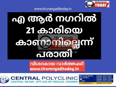 തിരൂരങ്ങാടി : എ ആർ നഗറിൽ യുവതിയെ കാണാനില്ലെന്ന് പരാതി. ചെണ്ടപ്പുറായ സ്വദേശി ആലുങ്ങൽ കുറുക്കൻ അഷറഫിൻ്റെ മകൾ ഫാത്തിമ ഷംനിഷ (21) യെ ആണ് കാണാതായത്. വ്യാഴാഴ്ച ഉച്ചയ്ക്ക് 2.45 ന് വീട്ടിൽ നിന്നും പോയ ശേഷം കാണാതാകുകയായിരുന്നു. മാതാവ് പൊലീസിൽ പരാതി നൽകി.