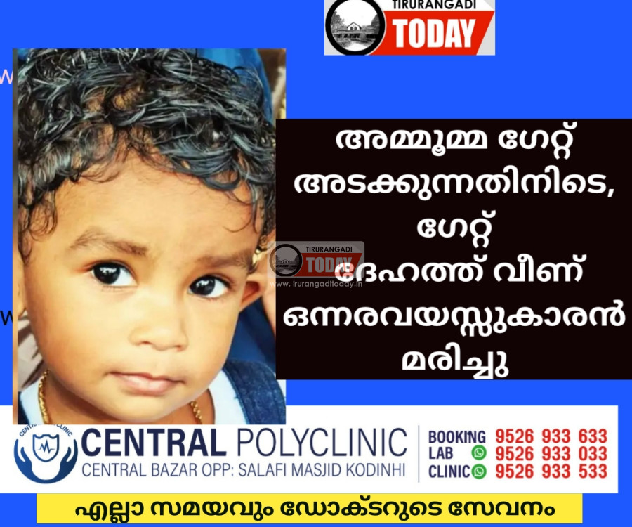 ആലപ്പുഴ : തള്ളിനീക്കുന്ന ഗേറ്റ്, അമ്മൂമ്മ അടയ്ക്കുന്നതിനിടെ ദേഹത്തു വീണു പരിക്കേറ്റ് ചികിത്സയിലായിരുന്ന ഒന്നരവയസ്സുകാരൻ മരിച്ചു.