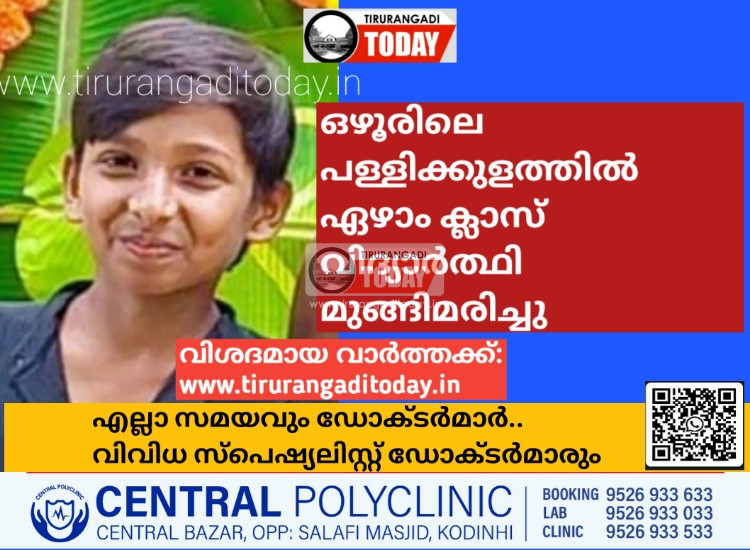 ഒഴൂർ: പള്ളിക്കുളത്തിൽ വിദ്യാർഥിയെ മുങ്ങിമരിച്ച നിലയിൽ കണ്ടെത്തി. കണ്ണൂർ പായ്യന്നൂർ ചൊക്ലി സ്വദേശിയും ഒഴൂർ തലക്കട്ടൂരിൽ താമസിക്കുന്ന പറമ്പന്റെ പോയിൽ മീത്തൽ സഹീർ – ദിൽഷീന ദമ്പതികളുടെ മകൻ സമീദ് അൻവർ (12) ആണ് മരിച്ചത്. ഇന്ന് ഉച്ചയ്ക്ക് 12 മണിയോടെയാണ് സംഭവം. സുഹൃത്തുക്കൾ ക്കൊപ്പം ചൂണ്ടയിടാൻ വന്നതാണ് എന്നറിയുന്നു. കുളത്തിൽ വീണു മരിച്ച നിലയിൽ കണ്ടെത്തുകയായിരുന്നു. താനൂർ ദേവദാർ സ്കൂളിൽ ഏഴാം ക്ലാസ് വിദ്യാർഥി യാണ്.