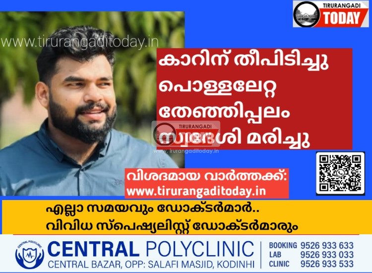 വീട്ടു മുറ്റത്ത് കാറിന് തീപിടിച്ച് പൊള്ളലേറ്റ യുവാവ് മരിച്ചു. ചേളാരി ജി ഡി എസ് ഹൈപ്പർ മാർട്ട് ഉടമ ചെനക്കലങ്ങാടി പൊറോളി അബ്ദുള്ള മകൻ ആദിൽ ആരിഫ്ഖാൻ (29) ആണ് മരിച്ചത്.