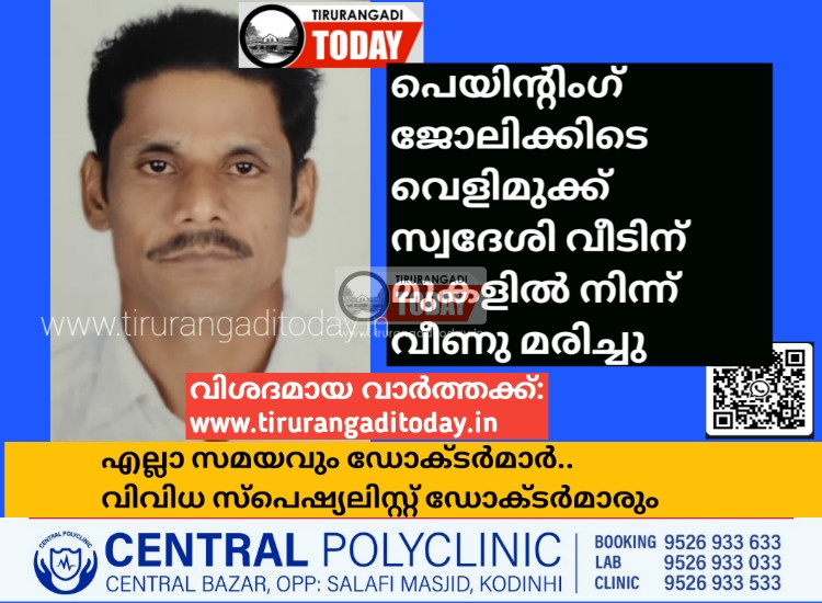 തിരൂരങ്ങാടി: പെയിൻ്റിംഗ് ജോലിക്കിടെ വീടിൻ്റെ സൺസൈഡിൽ നിന്നും താഴെ വീണു മരിച്ചു.