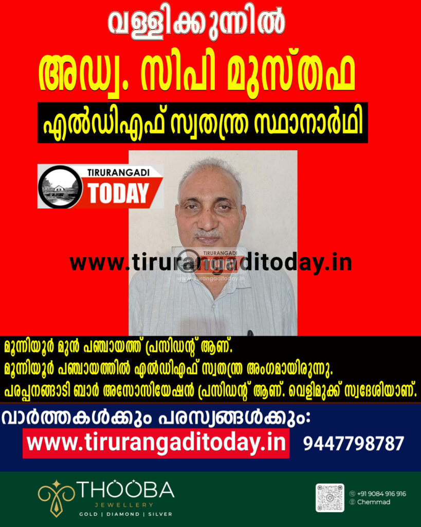 വള്ളിക്കുന്ന് : മണ്ഡലത്തിൽ അഡ്വ. സി പി മുസ്തഫയെ LDF സ്വതന്ത്ര സ്ഥാനാർഥിയായി തീരുമാനിച്ചു. നാഷണൽ ലീഗിന് അനുവദിച്ച സീറ്റിൽ പാർട്ടിക്കാരനായ സ്ഥാനാർഥിയെ ലഭിക്കാത്തതിനെ തുടർന്ന് സിപിഎം അംഗമായ മുസ്തഫയെ സ്വതന്ത്ര സ്ഥാനാർഥിയായി തീരുമാനിക്കുകയായിരുന്നു. യൂത്ത് കോൺഗ്രസ് നേതാവ് റിയാസ് മുക്കോലിയുമായും ചർച്ച നടത്തിയിരുന്നെങ്കിലും ഇദ്ദേഹം തയ്യാറായില്ല. ഒടുവിൽ മുസ്തഫയെ തീരുമാനിക്കുകയായിരുന്നു.