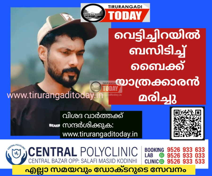 വെട്ടിച്ചിറയിൽ ബസ്സും ബൈക്കും കൂട്ടിയിടിച്ച് ബൈക്ക് യാത്രികൻ മരിച്ചു;വെട്ടിച്ചിറ മഹല്ലിൽപ്പെട്ട കൊളക്കുത്ത് ആലിക്കുട്ടി ഹാജിയുടെ മകൻ ശാഫിയാണ് മരിച്ചത്.ഇന്ന് വൈകുന്നേരം നാലുമണിക്ക്