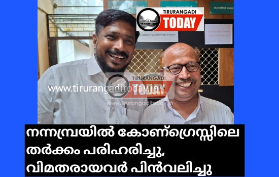 നന്നമ്പ്ര ഡിവിഷനിൽ കോണ്ഗ്രെസ്സിലെ തർക്കം പരിഹരിച്ചു, വിമതരായവർ പിൻവലിച്ചു