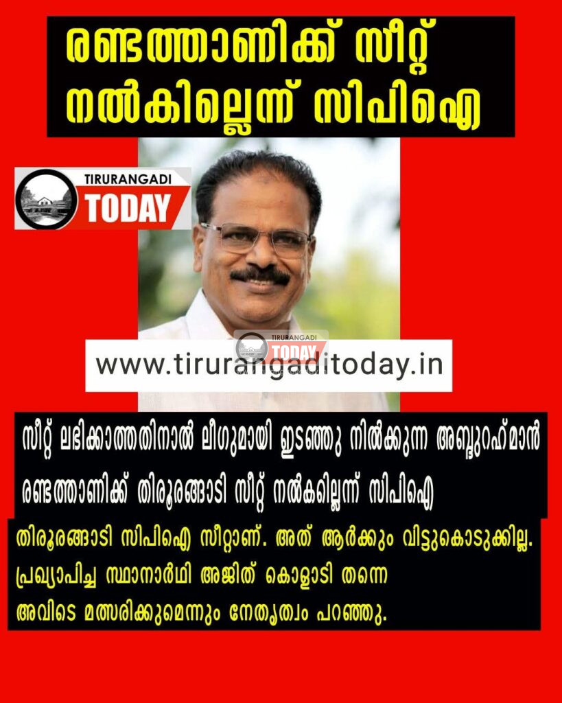 തിരൂരങ്ങാടി യിലെ സീറ്റ് നൽകില്ലെന്ന് സിപിഐ നേതൃത്വം അറിയിച്ചു. തിരൂരങ്ങാടി മണ്ഡലത്തിൽ എൽഡിഎഫ് സ്ഥാനാർഥിയായി മത്സരിക്കാൻ ഇദ്ദേഹം താൽപര്യം പ്രകടിപ്പിച്ചതായി വാർത്തകൾ പ്രചരിച്ചിരുന്നു. സിപിഎം നേതൃത്വം ഇതിന് സമ്മതം അറിയിച്ചതായും വാർത്തകൾ ഉണ്ടായിരുന്നു. സിപിഎം ജില്ലാ കമ്മിറ്റി ഇടപെട്ടാന് സ്ഥാനാർത്ഥിയാക്കുന്നത് എന്നായിരുന്നു പ്രചരണം. എന്നാൽ, തിരൂരങ്ങാടി സീറ്റിൽ അബ്ദുൽ റഹ്മാൻ രണ്ടത്താണിയെ സ്ഥാനാർഥി ആക്കുന്നത് സംബന്ധിച്ച് ആരും തങ്ങളോട് ചർച്ച നടത്തിയിട്ടില്ലെന്ന് സിപിഐ നേതാക്കൾ പറഞ്ഞു. തിരൂരങ്ങാടി സീറ്റ് സിപിഐ യുടേത് ആണ്. ഇവിടെ പ്രഖ്യാപിച്ച സ്ഥാനാർഥി അജിത് കൊളാടി തന്നെ മത്സരിക്കും.അതിൻ്റെ പ്രചരണവുമായി മുന്നോട്ട് പോകുകയാണെന്നും സിപിഐ നേതാക്കൾ പറഞ്ഞു. സിപിഎമ്മിന് താൽപര്യമെങ്കിൽ താനൂർ, തിരൂർ സീറ്റുകൾ നൽകിക്കോട്ടെ. തിരൂരങ്ങാടി ക്ക് പകരം വള്ളിക്കുന്ന് സീറ്റ് സിപിഐ ക്ക് നൽകും എന്ന ചർച്ചയും ഇല്ലെന്നും നേതാക്കൾ പറഞ്ഞു. കഴിഞ്ഞ തവണ പ്രഖ്യാപിച്ച സ്ഥാനാർഥിയെ സിപിഐ മാറ്റിയിരുന്നു. ആദ്യം അജിത്ത് കൊളാടി യെ പ്രഖ്യാപിച്ച ശേഷം പിന്നീട് നിയാസ് പുളിക്കലക ത്തിനെ സ്ഥാനാർഥി ആക്കുകയായിരുന്നു. ഇനി അത്തരത്തിൽ വേണ്ടെന്നാണ് പാർട്ടിയുടെ അഭിപ്രായമത്രേ.