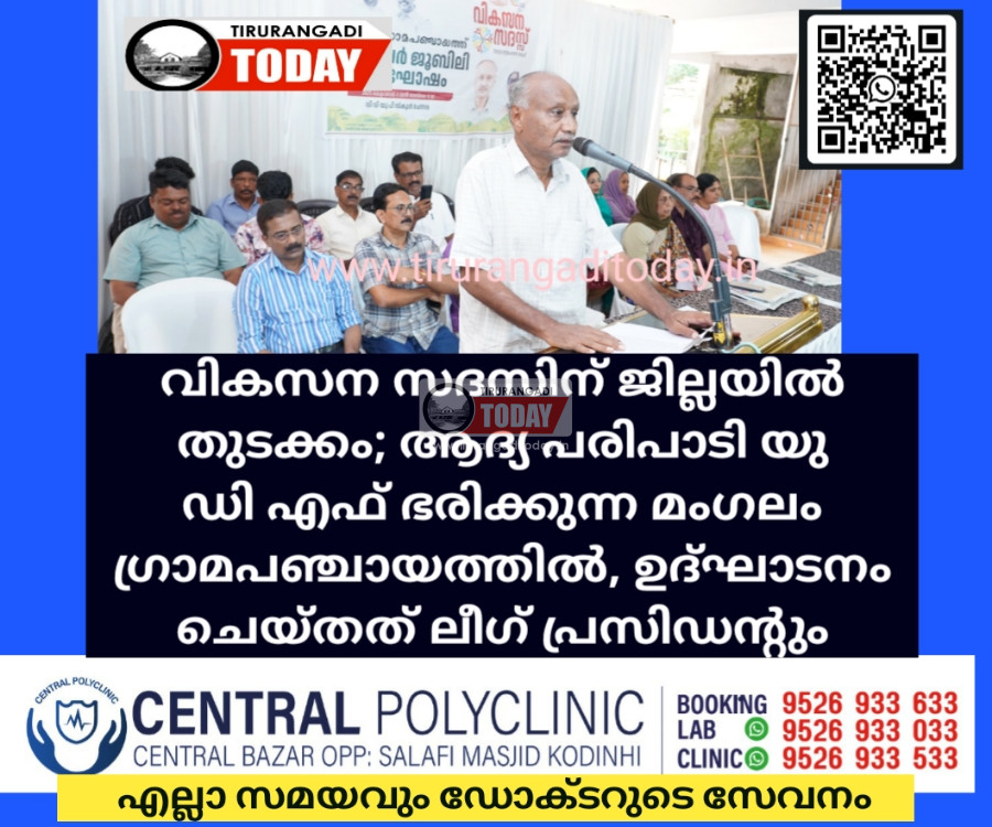 തിരൂർ : സംസ്ഥാന സര്ക്കാരും തദ്ദേശ സ്ഥാപനങ്ങളും ഇതുവരെ നടത്തിയ വികസന പ്രവര്ത്തനങ്ങള് വിലയിരുത്തുന്നതിനും ഭാവി വികസനത്തിന് പൊതുജനാഭിപ്രായവും പുതിയ ആശയങ്ങളും അവതരിപ്പിക്കുന്നതിന് സംഘടിപ്പിക്കുന്ന ജില്ലയിലെ വികസന സദസിന് മംഗലം ഗ്രാമപഞ്ചായത്തില് തുടക്കമായി. മംഗലം വി.വി.യു.പി സ്കൂളില് നടന്ന പരിപാടിയില് പഞ്ചായത്തിന്റെ സില്വര് ജൂബിലി ആഘോഷവും നടന്നു. പരിപാടി പഞ്ചായത്ത് പ്രസിഡന്റ് സി.പി. കുഞ്ഞുട്ടി ഉദ്ഘാടനം ചെയ്തു. പഞ്ചായത്ത് വൈസ് പ്രസിഡന്റ് കെ. പാത്തുമ്മക്കുട്ടി അധ്യക്ഷത വഹിച്ചു. സര്ക്കാരിന്റെ സഹായത്താല് തീരദേശ കുടിവെള്ള പദ്ധതി, റോഡ് നവീകരണം തുടങ്ങി നിരവധി വികസന പ്രവര്ത്തനങ്ങള് പഞ്ചായത്തില് നടത്താന് സാധിച്ചുവെന്ന് പഞ്ചായത്ത് പ്രസിഡന്റ് പറഞ്ഞു.