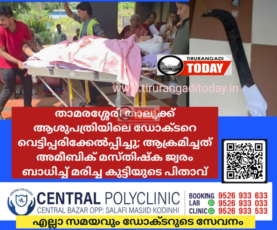 താമരശ്ശേരി താലൂക്ക് ആശുപത്രിയിലെ ഡോക്ടറെ വെട്ടിപ്പരിക്കേൽപ്പിച്ചു; ആക്രമിച്ചത് അമീബിക് മസ്തിഷ്ക ജ്വരം പിടിപെട്ട് മരിച്ച കുട്ടിയുടെ പിതാവ്