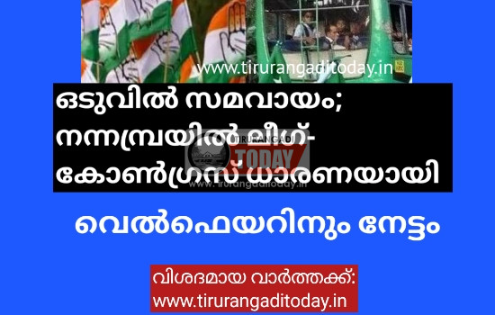 .ഇത്തരത്തിൽ ആണെങ്കിൽ മാത്രം മുന്നോട്ടു പോയാൽ മതി എന്നായിരുന്നു ലീഗിൻറെ തീരുമാനം. ഈ തീരുമാനം അംഗീകരിക്കുകയാണെങ്കിൽ യുഡിഎഫുമായി പോകാനും അല്ലെങ്കിൽ ഇന്ന് ലീഗ് സ്ഥാനാർഥികളെ പ്രഖ്യാപിച്ചു മുന്നോട്ട് പോകുമെന്നും ലീഗ് അറിയിച്ചു. കോണ്ഗ്രസിന്റെ ആവശ്യം ഞായറാഴ്ച രാത്രിക്കുള്ളിൽ അംഗീകരിച്ചില്ലെങ്കിൽ മറ്റു മാർഗം നോക്കാൻ കോണ്ഗ്രെസും തീരുമാനിച്ചു. ഇതിനിടെ ലീഗിനെതിരെയുള്ള നന്നമ്പ്ര ഫോറവുമായി കോണ്ഗ്രസ് നേതൃത്വം ചർച്ച നടത്തുകയും ചെയ്തു. പിന്നീട് ഇന്നലെ രാത്രി ചേർന്ന കോണ്ഗ്രസ് യോഗത്തിൽ ലീഗിന്റെ വാഗ്ദാനം അംഗീകരിക്കാൻ തീരുമാനിക്കുകയായിരുന്നു. ഇന്ന് രാവിലെ നടന്ന ലീഗ്, കോണ്ഗ്രസ് യോഗത്തിൽ ധാരണയായി പോകാൻ തീരുമാനിക്കുകയായിരുന്നു. ലീഗ് 14 സീറ്റിലും കോണ്ഗ്രസ് 8 സീറ്റിലും വെൽഫെയർ പാർട്ടി 2 സീറ്റിലും മത്സരിക്കും. ഒരു ബ്ലോക്ക് ഡിവിഷനിൽ കോണ്ഗ്രെസും 2 ഡിവിഷനുകളിൽ ലീഗും മത്സരിക്കും. കഴിഞ്ഞ തവണ പൊതു സ്വത ന്ത്രയെ നിർത്തിയിരുന്ന തട്ടത്തലം വാർഡിൽ ലീഗ് സ്ഥാനാർഥി മത്സരിക്കും.