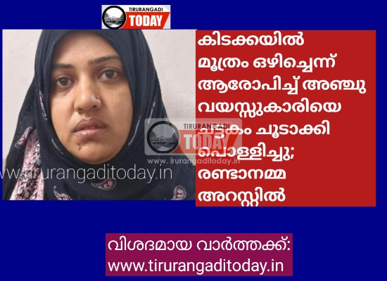 കിടക്കയില്‍ മൂത്രമൊഴിച്ചുവെന്ന് ആരോപിച്ച് നൂര്‍ നാസര്‍ കുട്ടിയുടെ സ്വകാര്യ ഭാഗത്ത് ചട്ടകം ചൂടാക്കി പൊള്ളലേല്‍പ്പിച്ചെന്നാണ് പരാതി. ജനുവരി രണ്ടിനായിരുന്നു സംഭവം. കുട്ടി പോകുന്ന അങ്കണവാടിയിലെ അധ്യാപികയാണ് പൊള്ളലേറ്റ സംഭവം കണ്ടെത്തിയത്. സംഭവത്തില്‍ ജുവനൈല്‍ ജസ്റ്റിസ് ആക്ട് പ്രകാരം പോലീസ് കേസെടുത്തു. പ്രതിയെ റിമാന്‍ഡ് ചെയ്തു.