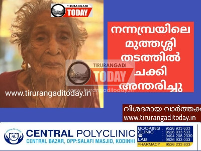 നന്നമ്പ്ര: വെള്ളിയാമ്പുറത്തെ തടത്തില് ചക്കി(106)അന്തരിച്ചു. ഭർത്താവ്: പരേതനായ ചക്കപ്പന്. മക്കള്: രാമന്, കാളി, കുറുംമ്പ, വേലായുധന്.