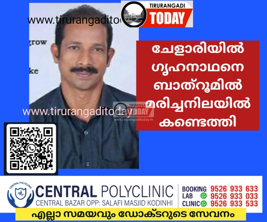 ചേളാരി : മധ്യവയസ്കനെ ബാത്ത് റൂമിൽ മരിച്ച നിലയിൽ കണ്ടെത്തി. പാപ്പനൂർ തിക്കൻതൊടി പോക്കാട്ട് പത്മനാഭന്റെ മകൻ രാജൻ (56) ആണ് മരിച്ചത്. കഴിഞ്ഞ ദിവസം ഡയാലിസിസ് കഴിഞ്ഞു വന്നതായിരുന്നു. മൃതദേഹം തിരൂരങ്ങാടി താലൂക്ക് ആശുപത്രി മോർച്ചറിയിൽ.