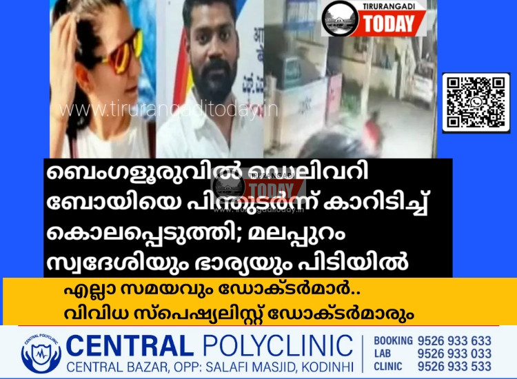 ബെംഗളൂരുവിൽ ഡെലിവറി ബോയിയെ പിന്തുടർന്ന് കാറിടിച്ച് കൊലപ്പെടുത്തി; മലപ്പുറം സ്വദേശിയും ഭാര്യയും പിടിയിൽ