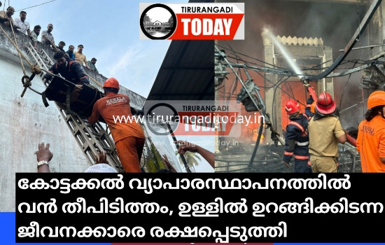 കോട്ടക്കൽ വ്യാപാരസ്ഥാപനത്തിൽ വൻ തീപിടിത്തം, ഉള്ളിൽ ഉറങ്ങിക്കിടന്ന ജീവനക്കാരെ രക്ഷപ്പെടുത്തി