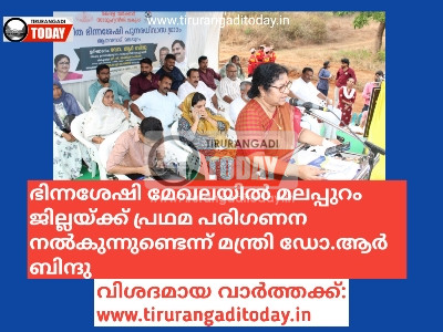 ഭിന്നശേഷി സമൂഹത്തിൻറെ സമഗ്ര പുനരധിവാസം ലക്ഷ്യമാക്കി സംസ്ഥാനത്താദ്യമായി തിരൂർ താലൂക്കിലെ കുറുമ്പത്തൂർ വില്ലേജിൽ തുടക്കം കുറിക്കുന്ന ഭിന്നശേഷി പുനരധിവാസ ഗ്രാമത്തിന്റെ ശിലാസ്ഥാപന കർമ്മം ഉന്നത വിദ്യാഭ്യാസ -സാമൂഹ്യനീതി വകുപ്പ് മന്ത്രി ഡോ. ആർ .ബിന്ദു നിർവഹിച്ചു.