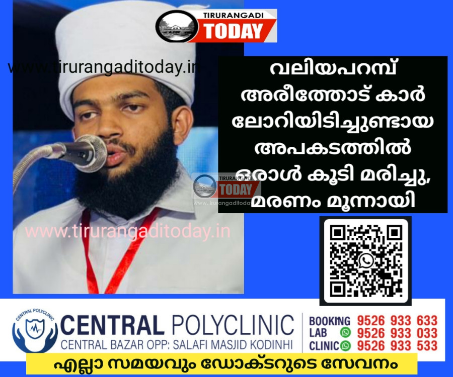 തിരൂരങ്ങാടി : ദേശീയപാതയിൽ വലിയ പറമ്പ് അരീത്തോട് ലോറിക്ക് പിറകിൽ കാറിടിച്ച് ഉണ്ടായ വാഹനാപകടത്തിൽ പരിക്കേറ്റ ഒരാൾ കൂടി മരിച്ചു. ഇതോടെ മരണം മൂന്നായി.