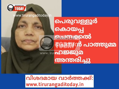 പെരുവള്ളൂര് കൊയപ്പ ചെനക്കല് ചെമ്പന് പാത്തുമ്മ ഹജ്ജുമ (68) അന്തരിച്ചു. ഭര്ത്താവ്: പരേതനായ പയ്യാനക്കാവന് അബൂബക്കര്. മക്കള്: മൊയ്തീന് കോയ, ഹസീന. മരുമക്കള്: താപ്പി മജീദ് (പന്താരങ്ങാടി) ഹസീന. സഹോദരങ്ങള്: ചെമ്പന് കുഞ്ഞഹമ്മദ്കുട്ടി ഹാജി, മറിയക്കുട്ടി, നബീസ, ആയിഷു, മൈമൂന. മയ്യത്ത് നമസ്കാരം ബുധനാഴ്ച എട്ടരക്ക് കൊയപ്പ ചെനക്കല് ജുമാമസ്ജിദില്.
