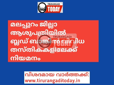 ബ്ലഡ് ബാങ്ക് മെഡിക്കല് ഓഫീസര്(എം.ബി.ബി.എസും ഒരുവര്ഷത്തെ ബ്ലഡ് ബാങ്ക് പ്രവൃത്തി പരിചയവും)