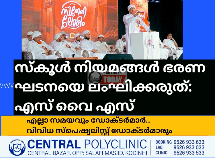 തിരൂരങ്ങാടി : കേരളത്തിലെ സാമൂഹികാന്തരീക്ഷത്തെ തകർക്കാത്ത രീതിയിലുള്ള ഇടപെടലുകൾ ഓരോ സമുദായത്തിൽ നിന്നും ഉണ്ടാവണമെന്ന് കേരള മുസ്ലിം ജമാഅത്ത് സംസ്ഥാന സെക്രട്ടറി സുലൈമാൻ സഖാഫി മാളിയേക്കൽ പ്രസ്താവിച്ചു. പൗരന്മാർക്ക് ഭരണഘടന നൽകുന്ന മൗലികാവകാശങ്ങളെ ലംഘിക്കാൻ സ്കൂൾ മാനേജ്മെന്റുകൾക്ക് അവകാശമില്ല.