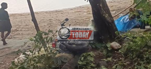 ബൈക്ക് പുഴയോരത്തെ മരത്തിൽ ഇടിച്ച നിലയിലാണ് കിടക്കുന്നത്