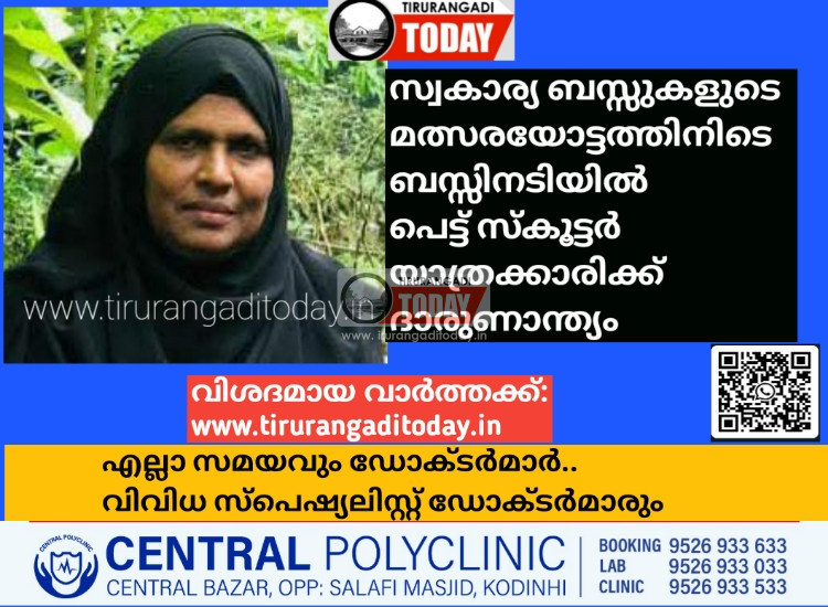 സ്വകാര്യ ബസ്സുകളുടെ മത്സരയോട്ടത്തിനിടെ ബസ്സിനടിയിൽ പെട്ട് സ്കൂട്ടർ യാത്രക്കാരിക്ക് ദാരുണാന്ത്യം