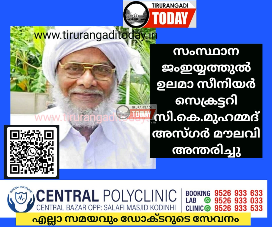 പെരിന്തൽമണ്ണ : കേരള സംസ്ഥാന ജംഇയ്യത്തുൽ ഉലമാ സീനിയർ സെക്രട്ടറിയും സംസ്ഥാന മതവിദ്യാഭ്യാസ ബോർഡ് പ്രസിഡൻ്റുമായ സി.കെ മുഹമ്മദ് അസ്ഗർ മൗലവി ( 88 ) അന്തരിച്ചു. പെരിന്തൽമണ്ണ വേങ്ങൂർ സ്വദേശിയാണ്.