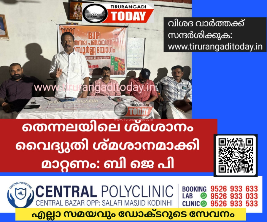 തെന്നല: പഞ്ചായത്ത് ശ്മശാനം വൈദ്യുതി ശ്മശാനമാക്കി മാറ്റണമെന്ന് ബി ജെ പി പഞ്ചായത്ത് കൺ വെൻഷൻ ആവശ്യപ്പെട്ടു. 3 സെന്റ് ഭൂമികളിലും, ക്വാർട്ടെഴ് സുകളിലും