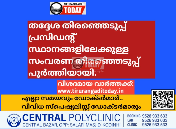 തദ്ദേശ തിരഞ്ഞെടൂപ്പ് പ്രസിഡന്റ് സ്ഥാനങ്ങളിലേക്കുള്ള സംവരണ തിരഞ്ഞെടുപ്പ് പൂർത്തിയായി.
