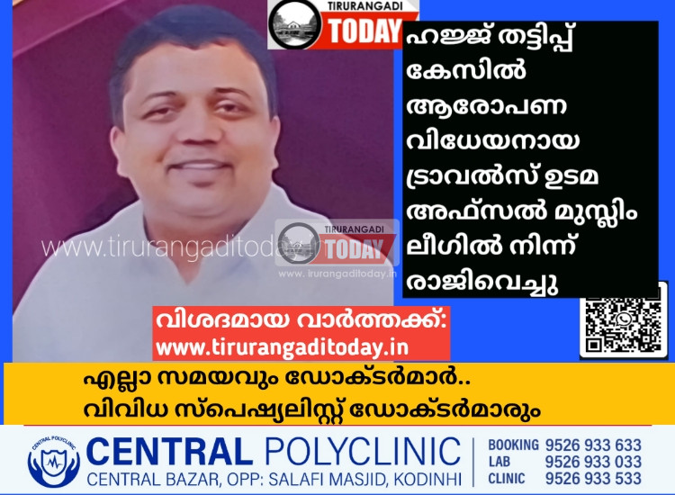 തിരൂരങ്ങാടി : ഹജ്ജിന് പണം വാങ്ങിയ ശേഷം കബളിപ്പിച്ചെന്ന പരാതിയിൽ പ്രതിയായ ചെമ്മാട്ടെ ട്രാവൽസ് ഉടമ അഫ്സൽ ലീഗിൽ നിന്ന് രാജി വെച്ചു.