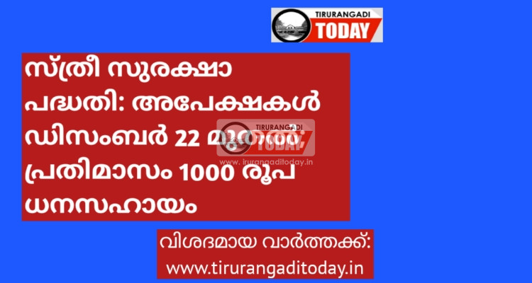 സ്ത്രീ സുരക്ഷാ പദ്ധതി: അപേക്ഷകൾ ഡിസംബർ 22 മുതൽ; പ്രതിമാസം 1000 രൂപ ധനസഹായം